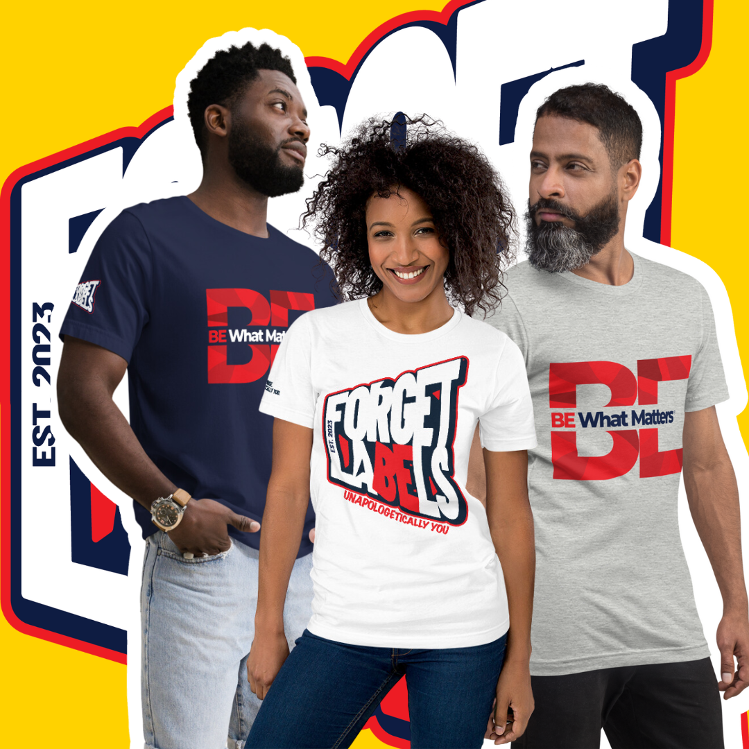 BE What Matters® is a transformative leadership movement driven by a powerful mission to create global communities of transformative leaders, entrepreneurs, and changemakers the solutions that our communities desperately need. We exists to inspire and empower the unapologetic leaders, the visionary entrepreneurs, and the fearless changemakers of the world, like you, to "Forget Labels and BE What Matters®". Whether you're at a workshop, a community event, or simply living your daily life, let our apparel be a reminder of the powerful community you're a part of and the impact you make. Who you are and how you show up matters! We want you to do it all with the perfect blend of DOPE STYLE, CONFIDENCE, and COMFORT!